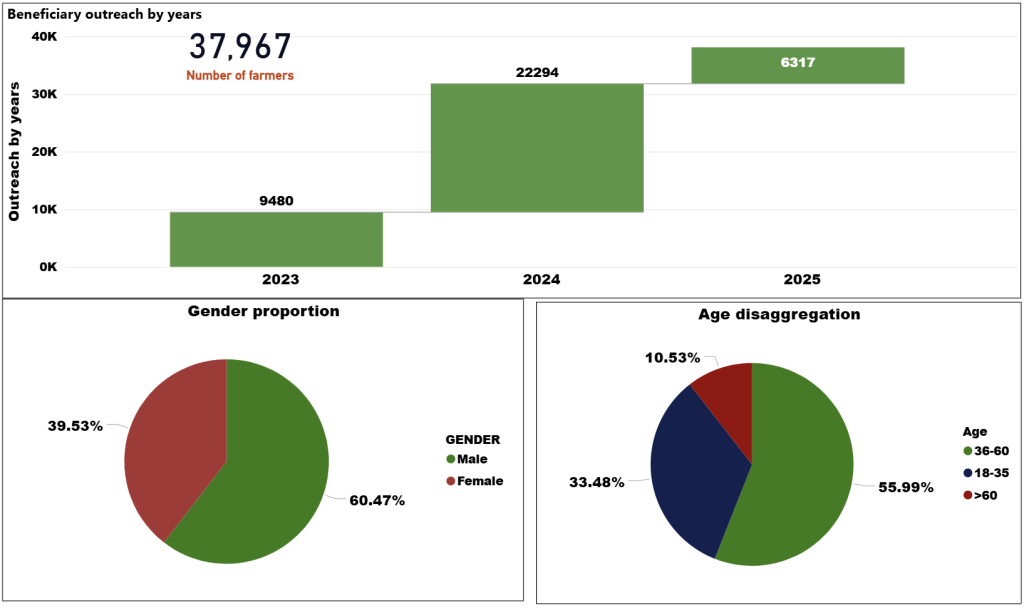The project aims to rehabilitate 3,500 hectares of degraded land through the promotion of agroforestry practices and soil and water conservation (SWC) measures. These interventions will improve soil fertility, enhance moisture retention, and reduce erosion, while increasing tree cover and promoting climate-smart land management. In addition to restoring ecosystem services, the measures will strengthen the resilience of farming systems, improve agricultural productivity, and contribute to sustainable livelihoods for local communities..